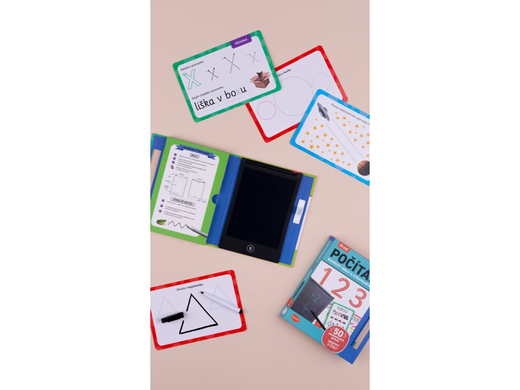 Set 25 stíratelných kartiček obsahujících 50 edukativních aktivit, přiložený fix s houbičkou a kouzelný tablet – to je pro rodiče ten nejrafinovanější a pro děti ten nejzábavnější způsob, jak společně vykročit na cestu za poznáváním písmenek a prvního psaní! Práce s výukovými kartičkami a tabletem rozvíjí pozornost a koncentraci, jemnou motoriku, slovní zásobu a jazykové schopnosti, představivost a fantazii a v neposlední řadě všeobecné znalosti!Součástí ceny je recyklační příspěvek ve výši 1,26 Kč s DPH.
