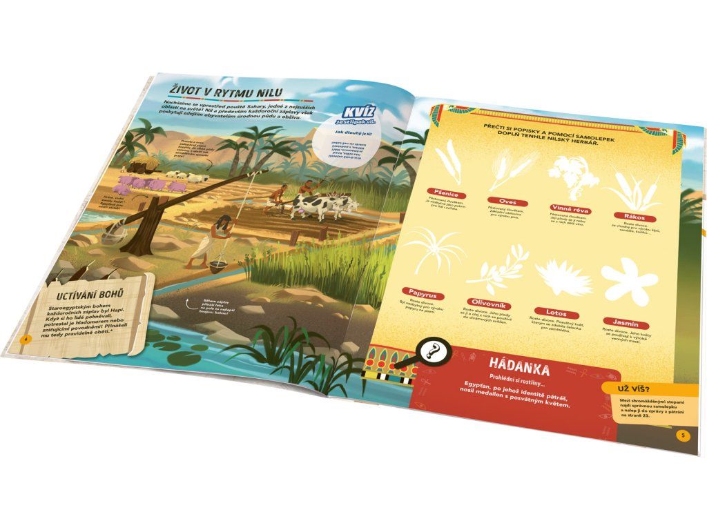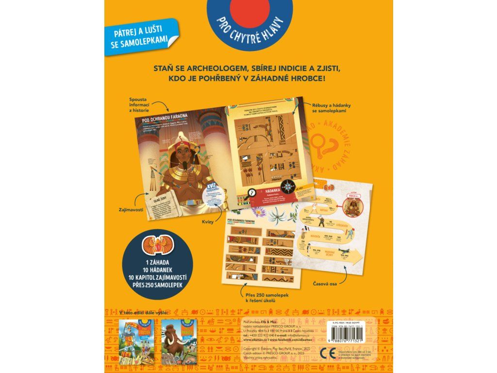 Vydejte se na dobrodružnou misi s krycím názvem EGYPT! Akademie záhad, jež řeší hádanky staré stovky, tisíce, ba miliony let, má pro vás zapeklitý případ. Tamní vědci objevili papyrus, na němž je zaznamenáno místo, kde se má nacházet hrobka. Tvrdí se o ní, že je prokletá… Pokračujte v archeologickém šetření, sbírejte indicie, najděte záhadnou hrobku a zjistěte, kdo je v ní pochován. Jen pokud se dokážete úspěšně popasovat se všemi rébusy, kvízy a úkoly, přijdete tomu na kloub! Máte na to přes 150 samolepek, a navíc spoustu poutavých informací a zajímavostí z historie.Doplňkové parametry