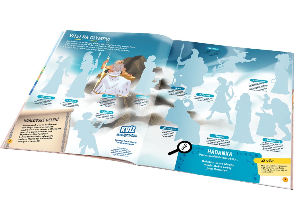 Vydejte se na dobrodružnou misi s krycím názvem ŘECKO! Akademie záhad, jež řeší hádanky staré stovky, tisíce, ba miliony let, má pro vás zapeklitý případ. Tamní vědci objevili pozůstatky velkolepého starořeckého chrámu, který byl podle prvních výsledků bádání zasvěcen některému z mnoha bohů řecké mytologie… Pokračujte v archeologickém šetření, sbírejte indicie a zjistěte, komu byl před více než 2500 lety chrám zasvěcen. Jen pokud se dokážete úspěšně popasovat se všemi rébusy, kvízy a úkoly, přijdete tomu na kloub! Máte na to přes 250 samolepek, a navíc spoustu poutavých informací a zajímavostí z historie.Doplňkové parametry