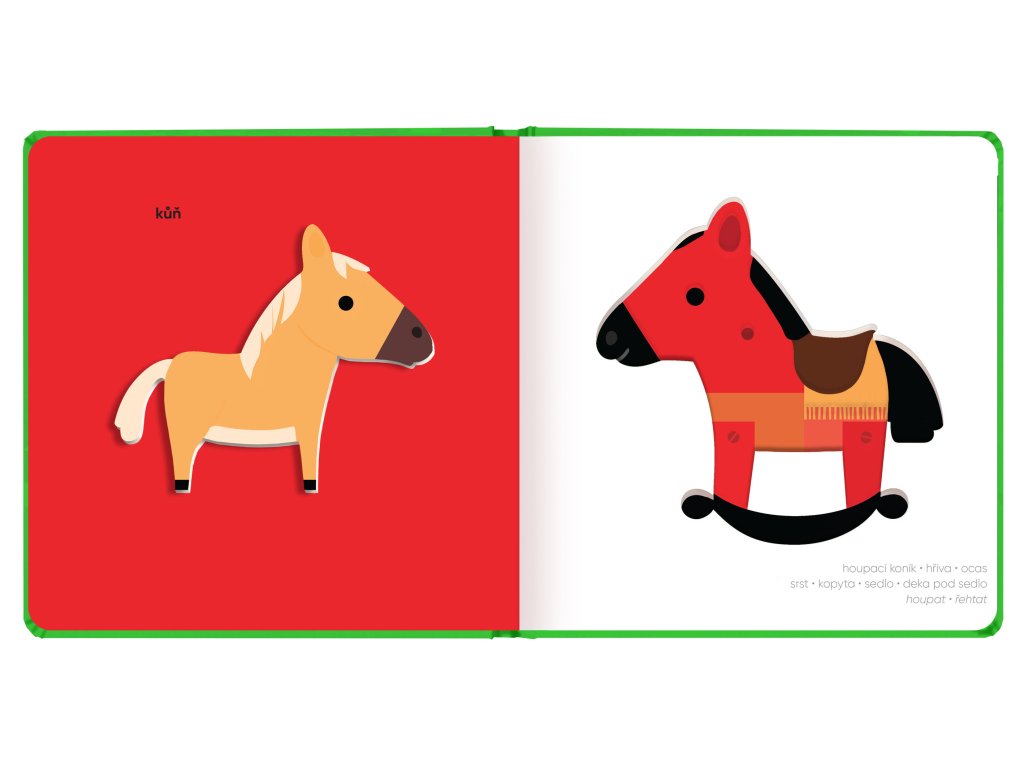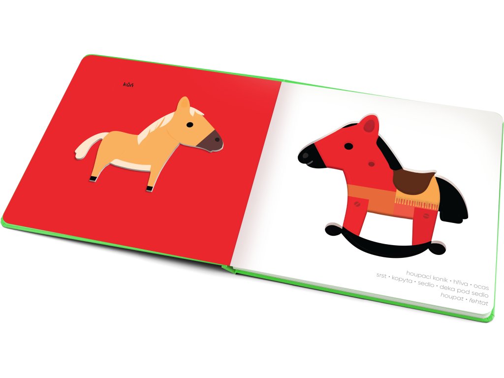 Knížky ediční řady KLAP KLAP OBRÁZKY obsahují 3D obrázky, díky nimž je čtení ještě zajímavější! Umožňují totiž zapojení více smyslů naráz: děti si mohou prohlížet, pojmenovávat předměty, činnosti, ale také vnímat tvary hmatem. Tento způsob poznávání přispívá jak k rozvoji koordinace ruka – oko, tak k lepšímu uchopování základních pojmů. Související slova na každé stránce jsou pak odrazovým můstkem k povídání, jež podpoří jazykové dovednosti důležité pro další úspěšné učení. Díky tomuto jedinečnému knižnímu formátu dostanou abstraktní pojmy hmatatelnou podobu!Doplňkové parametry