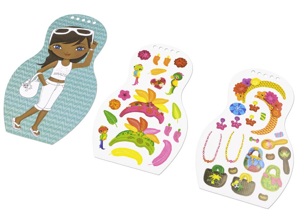 Kreativní omalovánky, vzory, samolepky… tyto knížky obsahují vše, co je třeba k vytváření nesčetných modelů podle módy jednotlivých kultur. Tradicemi inspirované náměty podněcují fantazii, a k tomu se děti dozvědí i pár zajímavých informací navrch! Jak jejich vrstevníci z blízkých i vzdálených zemí bydlí, jak se učí a baví, na jakých specialitách si pochutnávají. Vydejte se na objevitelské výpravy do vzdálených koutů světa!Omalovánky a samolepky... všechno, co potřebuješ k vytvoření brazilské kolekce!