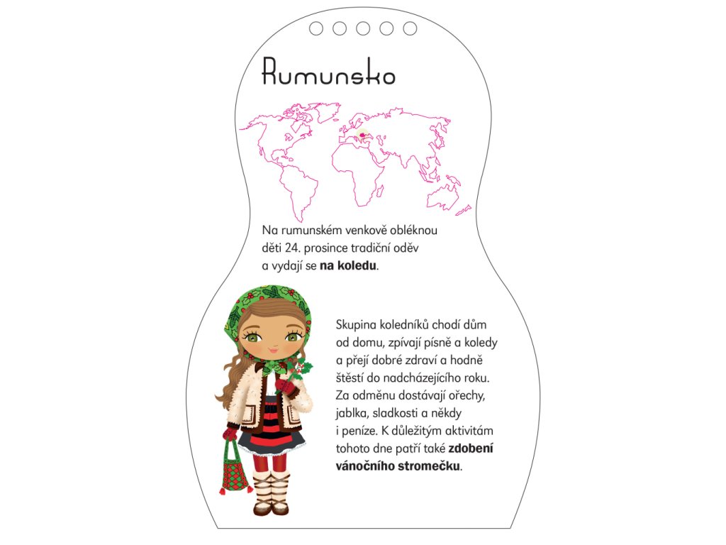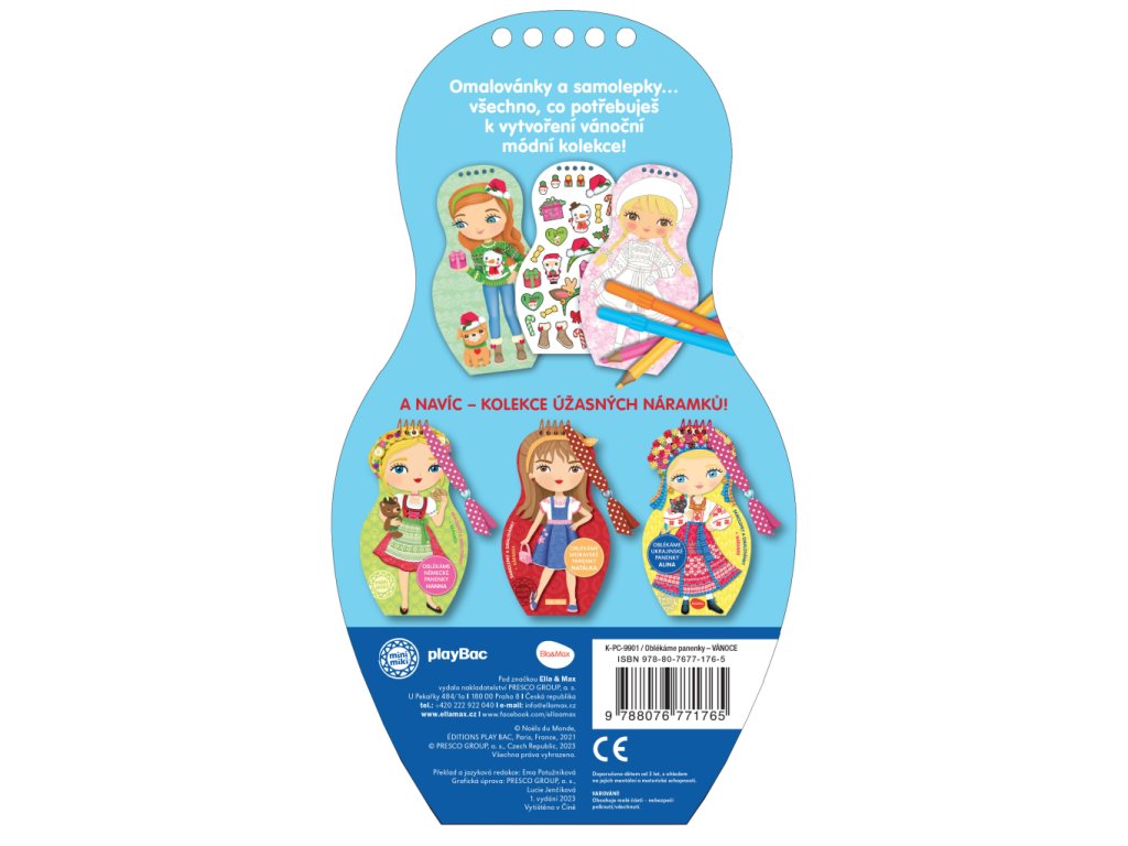 Další titul naší oblíbené série představuje malým čtenářům modely, které oblékají lidé z různých koutů světa u příležitosti Vánoc. Kreativní omalovánky, spousta samolepek… knížka obsahuje vše, co je třeba k vytvoření nesčetných vánočních modelů. A k tomu se děti dočtou i spoustu zajímavých informací navrch! Jak se slaví Vánoce ve Velké Británii, v Norsku, ve Francii, Rumunsku nebo třeba v Rusku? To a ještě mnohem víc se dozvíte, vydáte-li se za poznáním s našimi panenkami. A ke každé knížce dostanete krásný náramek pro štěstí!Doplňkové parametry