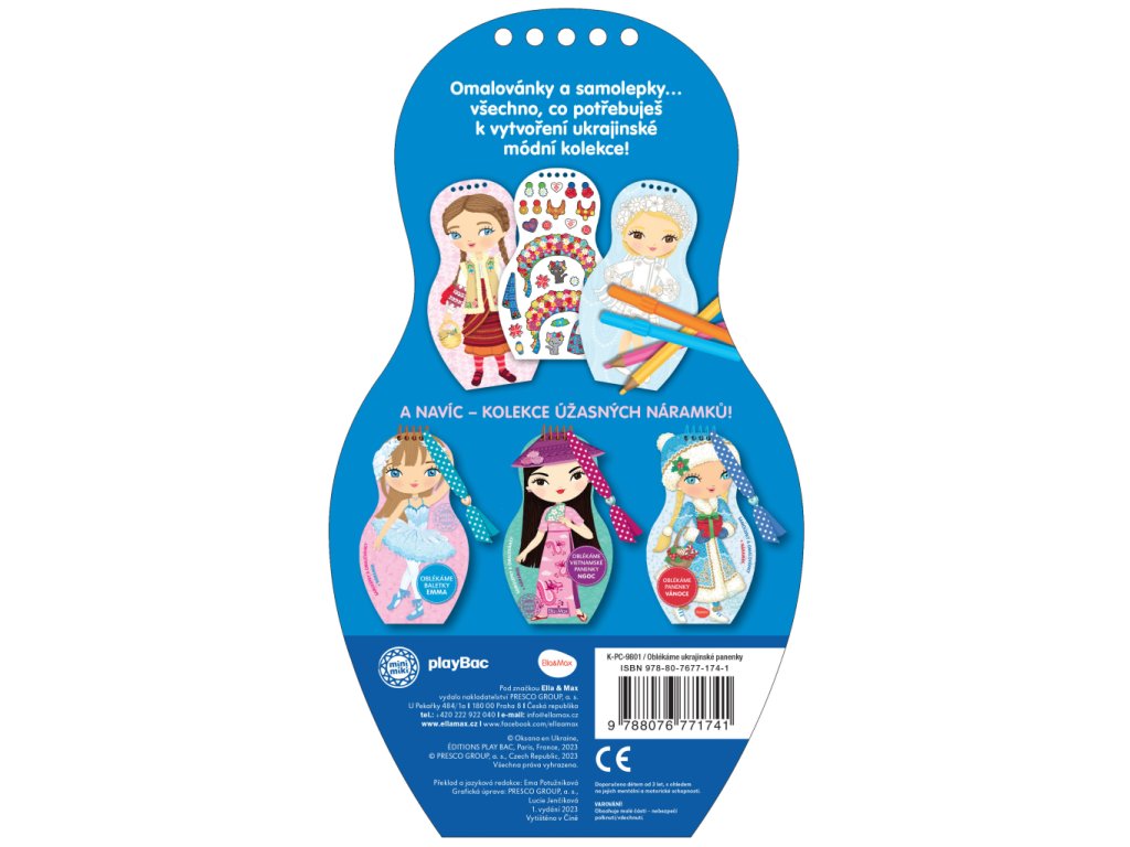 Další titul naší oblíbené série představuje malým čtenářům kouzlo Ukrajiny prostřednictvím panenky Aliny. Kreativní omalovánky, spousta samolepek… knížka obsahuje vše, co je třeba k vytvoření nesčetných modelů podle ukrajinské módy. A k tomu se děti dočtou i spoustu zajímavých informací navrch! Jak se jejich vrstevníci na Ukrajině zdraví, jak se tam učí, na jakých specialitách si pochutnávají? Víte, jak chutnají vareniky nebo co je kalamajka? To a ještě mnohem víc se dozvíte, vydáte-li se za poznáním s našimi panenkami. A ke každé knížce dostanete krásný náramek pro štěstí!Doplňkové parametry