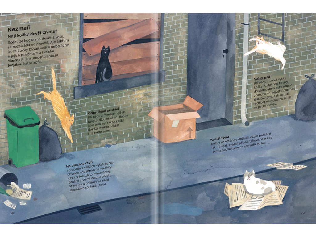 Lidé chovají kočky jako domácí mazlíčky už více než tři a půl tisíce let, ale v blízkosti člověka se tito tvorové drží už dobrých devět tisíc let. Vědci odhadují, že na světě dnes žije okolo jedné miliardy koček domácích, což znamená jednu kočku na každých osm lidí! Přečtěte si tuhle knížku a staňte se kočičími experty. Dozvíte se, jaké existují druhy koček, jaké mají zvláštní schopnosti, jak mezi sebou komunikují, jak promlouvají k člověku nebo jakou úlohu hrála tato zvláštní zvířata v historii lidstva.Tahle knížka potěší všechny milovníky koček, ale zaujme dočista každého!