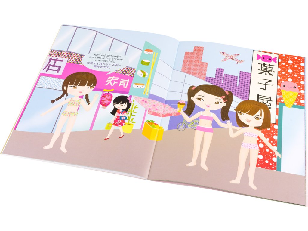 Tato série představuje nejmenším tahitskou, španělskou, indiánskou či eskymáckou kulturu. Děti zábavnou formou získají a zpřesní si své představy o cizích zemích a jejich obyvatelích. V každé knížce objeví 300 samolepek a řadu obrázků zkušené ilustrátorky a vystudované stylistky Julie Camel, která svým postavičkám, jejich oděvům i kulisám vdechla autenticitu. Velkou zajímavostí jsou v neposlední řadě i dvojjazyčné texty v obrázcích, díky nimž bude pro malé čtenáře poznávání ještě zajímavější a komplexnější.Objevte japonskou kulturu s panenkou Akiko. Doprovázejte ji domů, do školy nebo na vrchol hory Fudži, účastněte se s ní čajového obřadu anebo svátku rozkvetlých sakur.