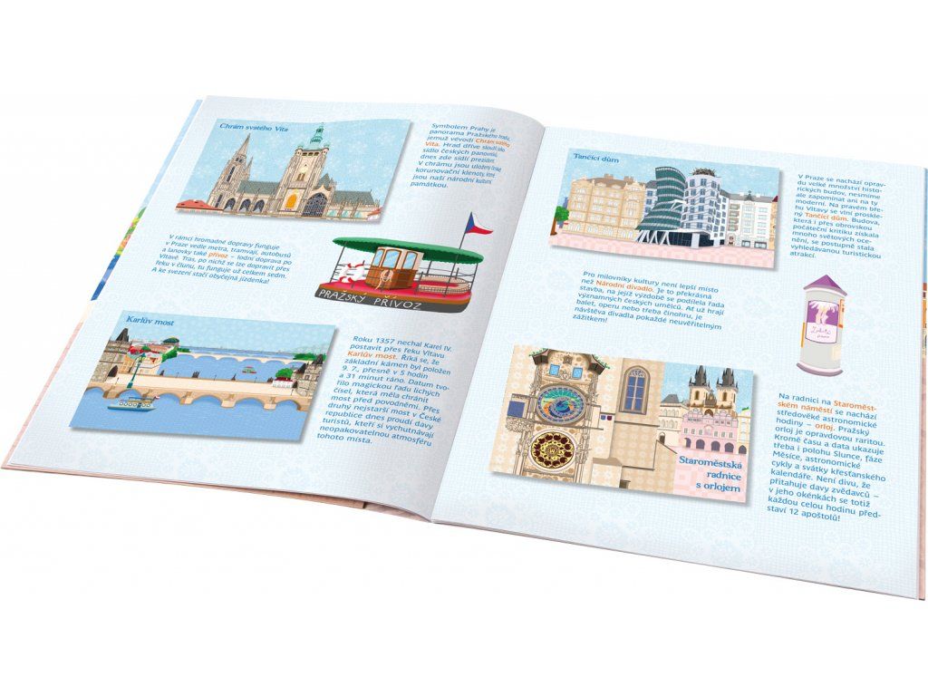 Oblíbená série minimiky přichází s další novinkou v podobě zábavné samolepkové knížky, v níž budou děti společně s panenkou Terezkou a jejími kamarádkami Kačkou a Aničkou objevovat nejznámější kouty našeho hlavního města Prahy, jedné z nejkrásnějších evropských metropolí. Známé pražské scenerie mohou děti doplňovat spoustou krásných samolepek podle vlastní fantazie a v knížce najdou také mnoho zajímavých informací o zdejších památkách, známých místech, ale také třeba o české kultuře.Doplňkové parametry