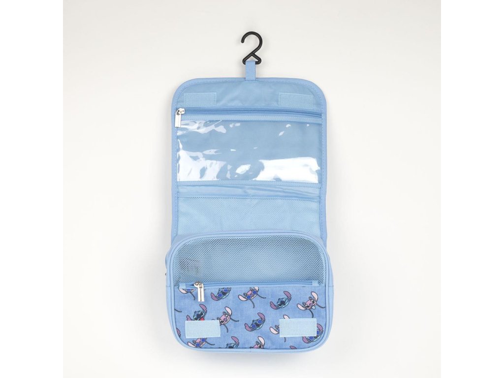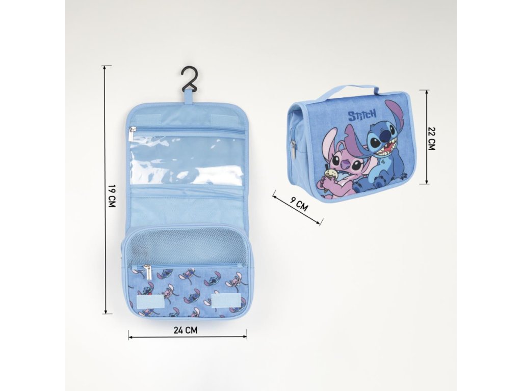 Cestování i každodenní organizace kosmetiky může být mnohem přehlednější. Závěsná skládací toaletní taštička Disney Lilo & Stitch nabízí praktické řešení pro uložení hygienických potřeb doma i na cestách. Motiv Stitch a Angel v modrém provedení působí hravě a přináší radost při každém použití.