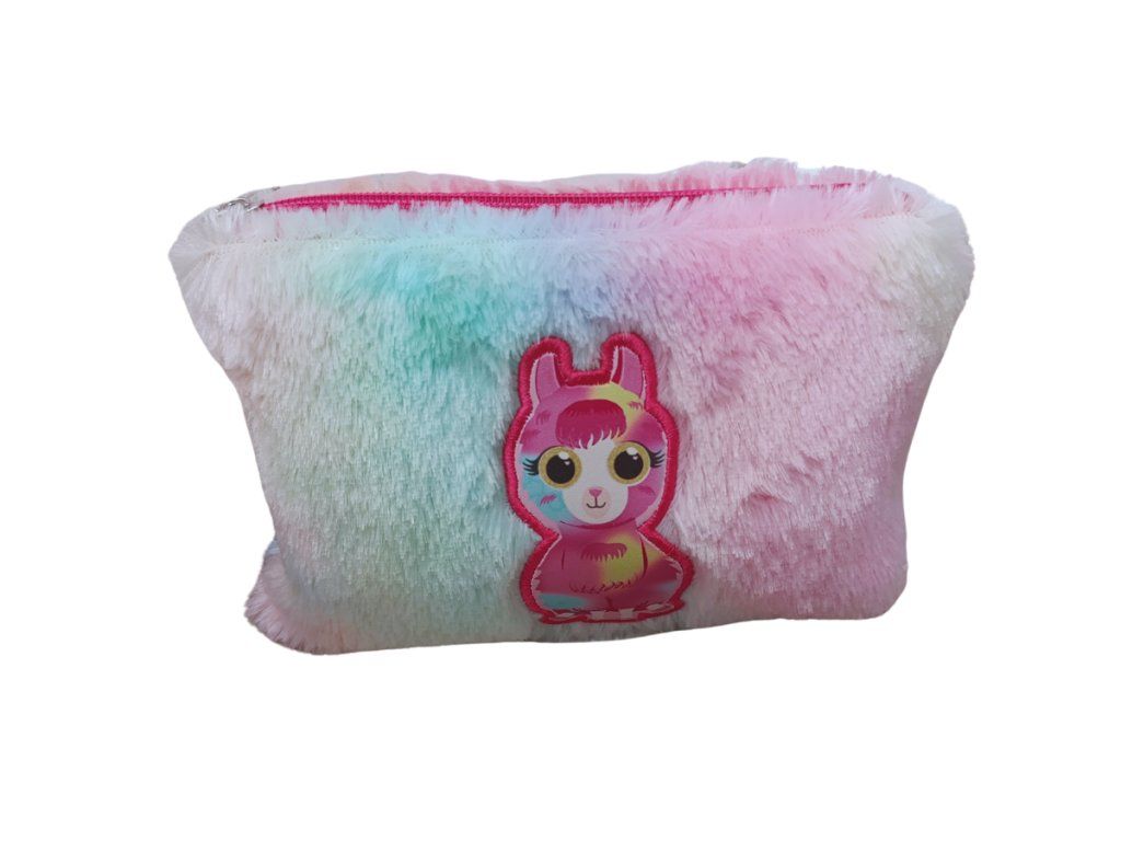 Povrch taštičky je tvořen hebkým plyšem s jemným barevným přechodem, který působí hravě a něžně zároveň. Díky tomu je ideální nejen jako kosmetická taška, ale i jako pouzdro na drobnosti, školní potřeby nebo cestovní doplněk.