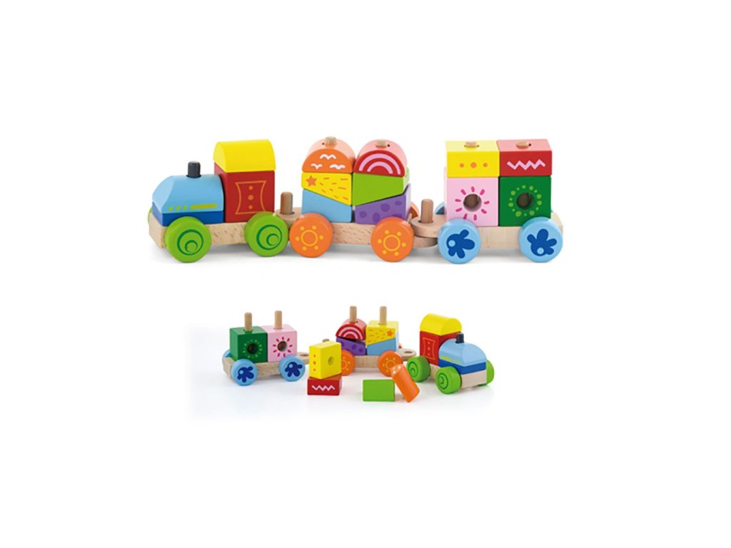 Dřevěný vláček s kostkami od společnosti Viga je hračka, kterou si zamiluje každé dítě. Intenzivní barvy a bloky, které se snadno uchopují, povzbudí každé batole ke hře.