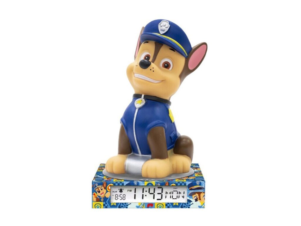Dětské 3D noční světlo a budík TLAPKOVÁ PATROLA CHASE modrý 25 cm