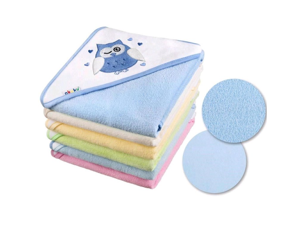 Dětská osuška Akuku s obrázkem a kapucí. Osuška je vyrobena z příjemného a měkkého materiálu. Vnitřní strana osušky je bavlněná, vnější fleecová. Rozměry: cca 100x100 cm. Složení: 100% bavlna.