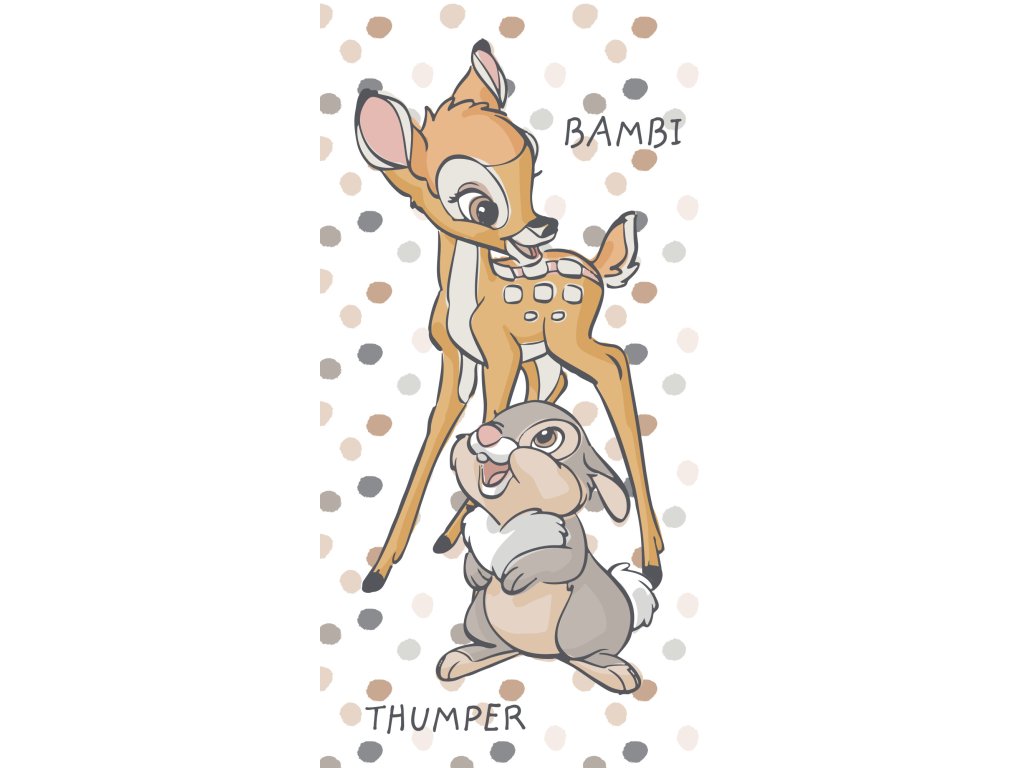 Dopřejte svým dětem pohodlí a radost po každém koupání s krásnou dětskou osuškou s motivem oblíbeného srnečka Bambiho a jeho kamaráda králíčka Dupíka. Roztomilý design v jemných béžových tónech působí klidně a elegantně, takže osuška je ideální pro holky i kluky.