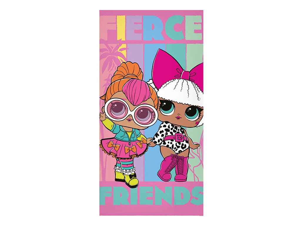 Barevná osuška s oblíbeným motivem LOL Surprise potěší každou malou slečnu. Na přední straně se nachází dvě stylové panenky s velkými očima v moderních outfitech s pastelovým pozadím. Veselý design v růžových a barevných odstínech zaujme na první pohled a skvěle vynikne na pláži, u bazénu i doma.