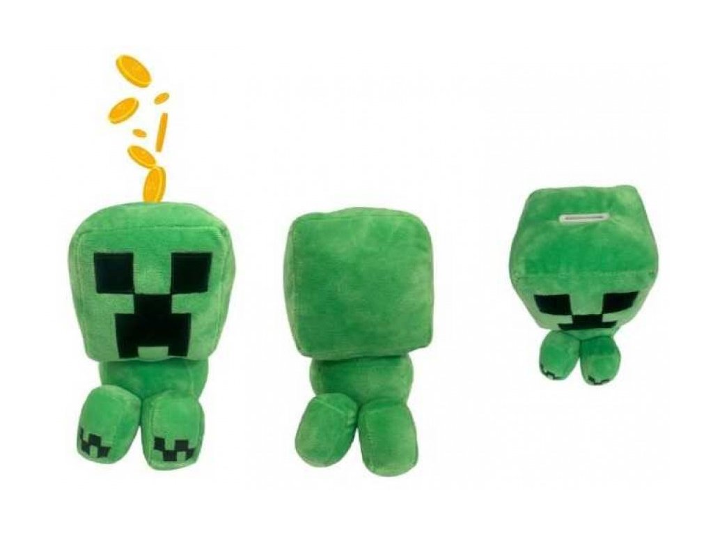 Bomba !!! Plyšová pokladnička jako stvořená pro hráče Minecraft. Super plyšový kámoš Creeper, se kterým se děti naučí šetřit. Plyšák Minecraft má v horní části umístěn otvor pro vhazování mincí a snadný je i výběr. Žádné párání, ale šroubovací otvor ve spodní části.