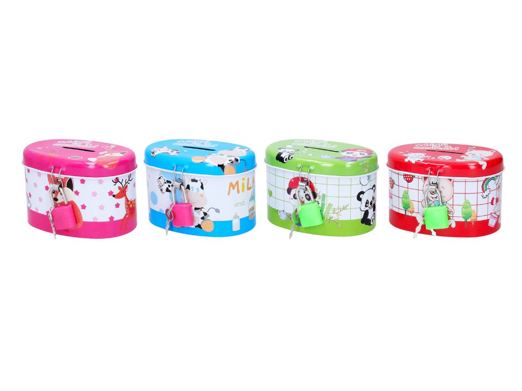 Pokladnička plechová ovál 10x6,5 cm assort