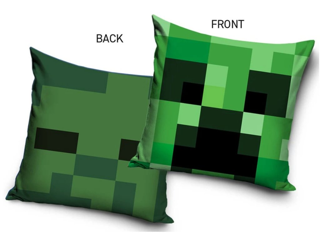 Kostičkovaný grafický styl přesně odpovídá vizuálu hry Minecraft a okamžitě upoutá pozornost. Polštářek se tak stane výrazným doplňkem dětského pokoje, herního koutku nebo postele.