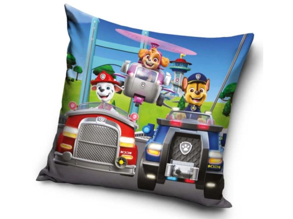 Dětský polštářek TLAPKOVÁ PATROLA připraveni do akce 40x40 modrý