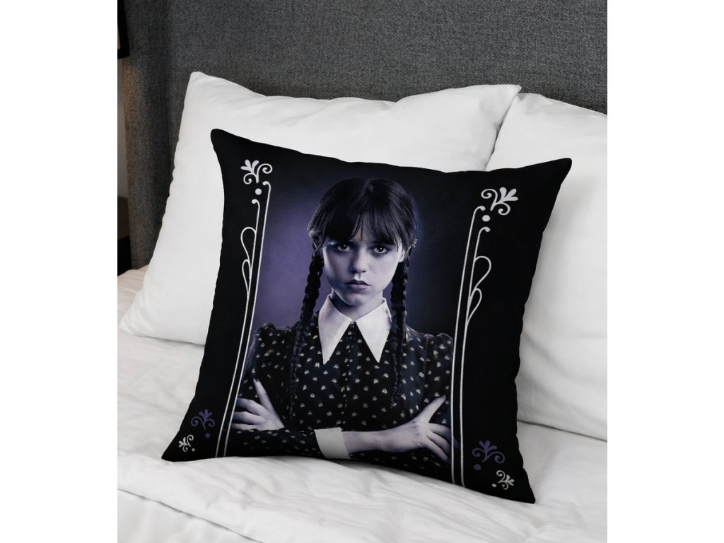 Stylový polštářek Wednesday Addams potěší každého fanouška temného humoru a ikonické hrdinky ze světa Addamsovy rodiny. Tento oboustranný dekorativní polštář je nejen designovým doplňkem do ložnice, obýváku či studentského pokoje, ale také maximálně pohodlný pro každodenní použití.
