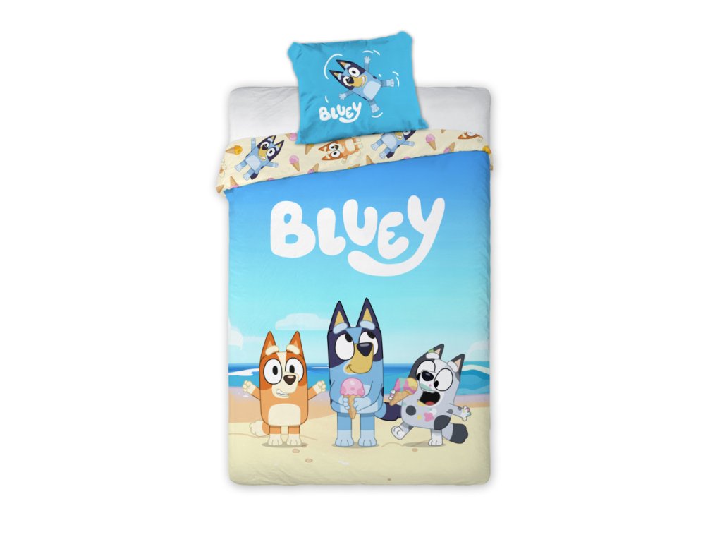 Dětské bavlněné povlečení BLUEY na pláži 140x200cm, 70x90 cm