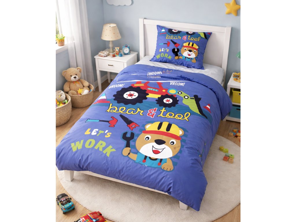 Dětské bavlněné povlečení, ze kterého budou Vaši kluci nadšení. Povlečení je v modrém provedení s krásným motivem medvídka opraváře a bagříka. Kvalitní bavlna, zapínání na zip, syté barvičky, co vydrží a dokonale pohodlný spánek plný krásných příběhů.