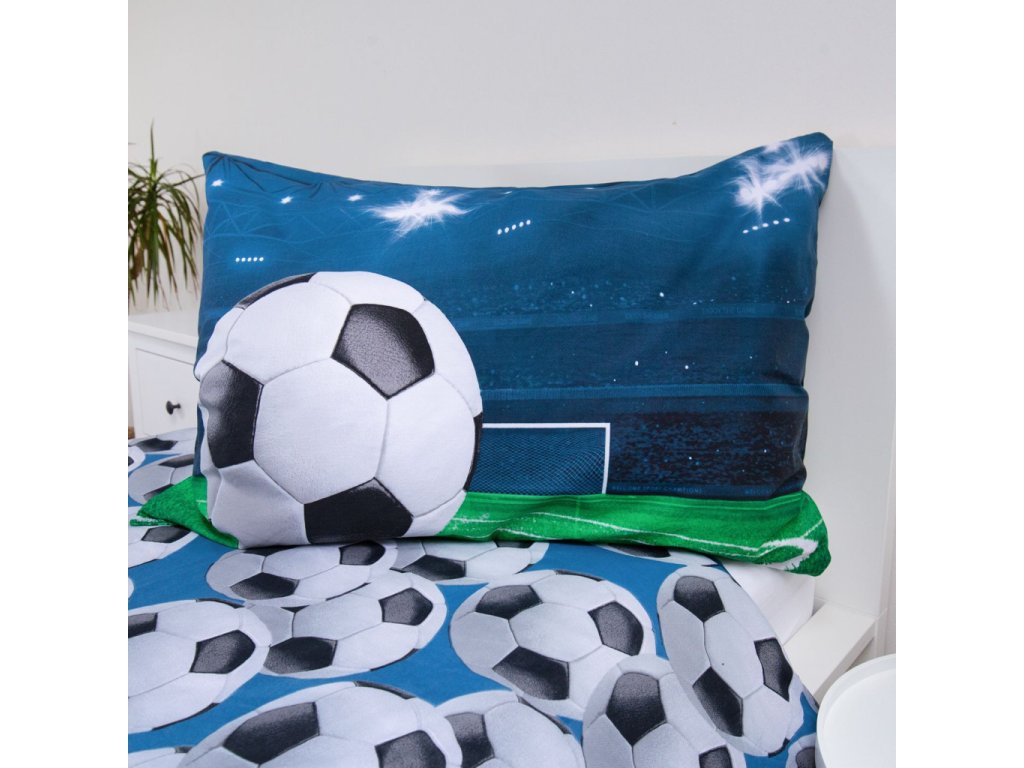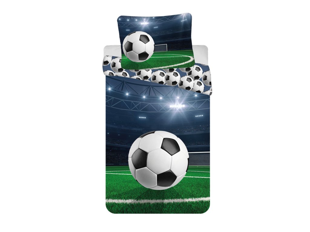 Dopřejte si spánek s atmosférou velkého zápasu. Povlečení s motivem fotbalového stadionu, zářících reflektorů a dominantního míče na hrací ploše přináší do ložnice jedinečný dynamický vzhled. Ideální pro každého, kdo má rád energii sportu a chce ji mít i doma.
