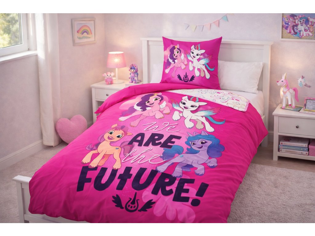 Na povlečení najdete oblíbené postavy jako Twilight Sparkle, Rainbow Dash, Pinkie Pie a jejich kamarádky, které symbolizují přátelství, odvahu a radost. Tyto roztomilé hrdinky doprovodí děti do světa sladkých snů a dobrodružství 🌈.