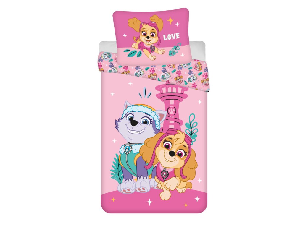 Dětské povlečení TLAPKOVÁ PATROLA Love mikrovlákno růžové 140x200