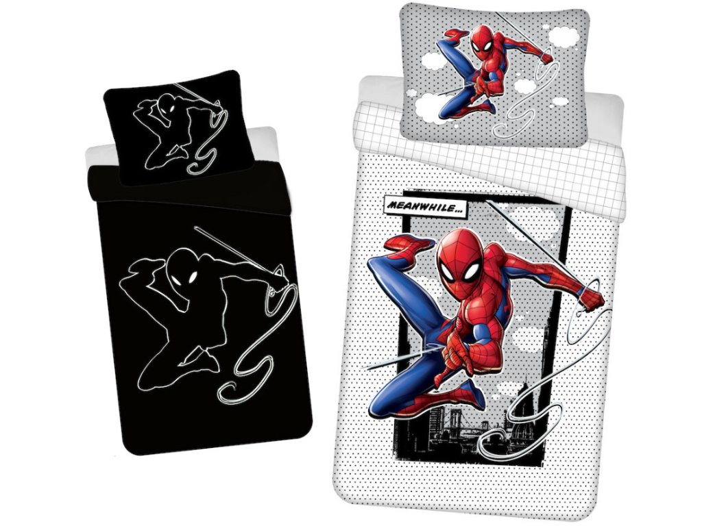 Povlečení Spider-Man Meanwhile nabízí jedinečný zážitek nejen přes den, ale i v noci. Kombinace výrazného komiksového designu a speciálního světelného efektu vytváří originální prvek do každého dětského pokoje. Motiv Spider-Mana v akční póze doplněný o grafické prvky a nápisy působí dynamicky a moderně.
