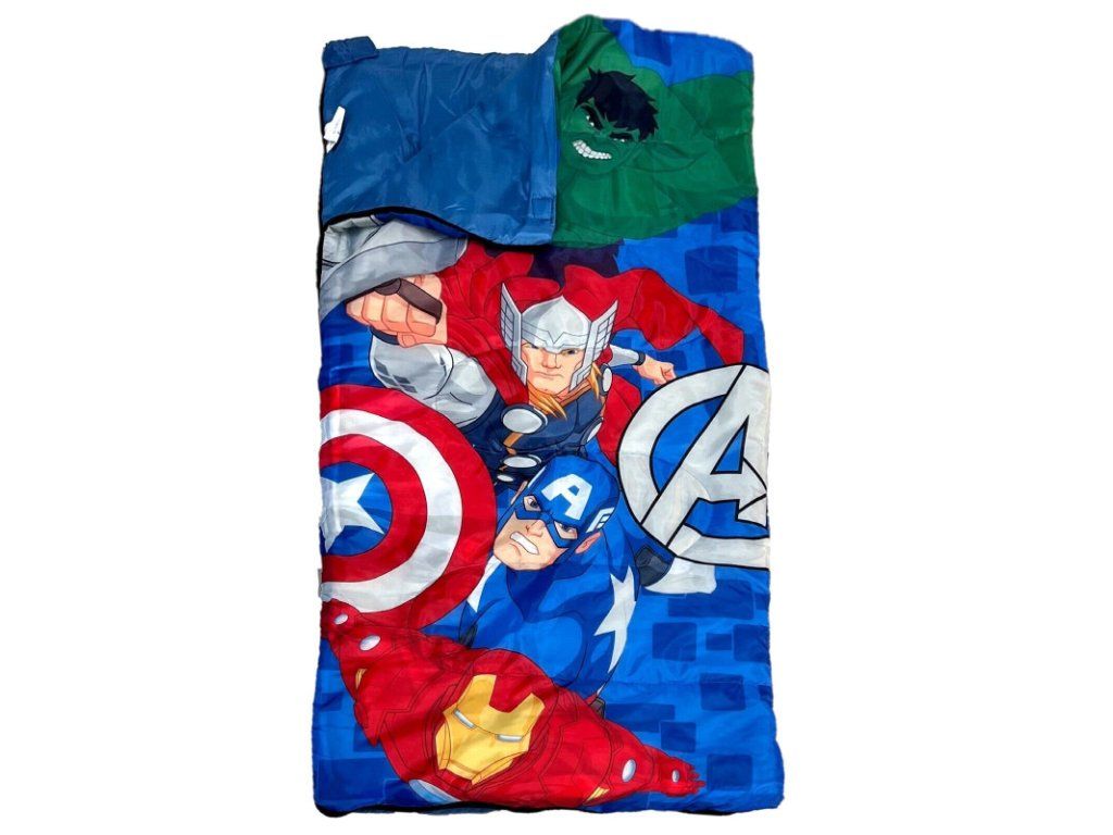 Pohodlný a hřejivý dětský spacák s oblíbenými superhrdiny z týmu Avengers. Barevný motiv zobrazuje akční postavy, jako jsou Captain America, Thor, Iron Man a Hulk, kteří dodají každému dobrodružství ten správný superhrdinský styl. Spacák je ideální na přespávání u kamarádů, školní výlety, kempování nebo hraní doma.