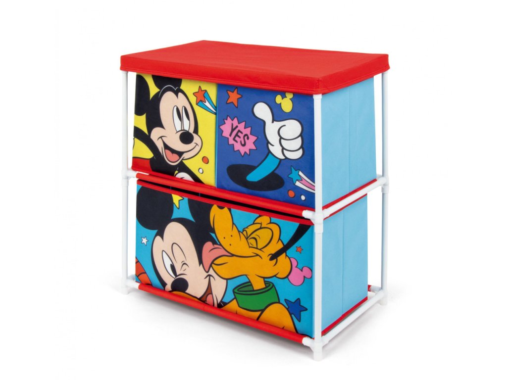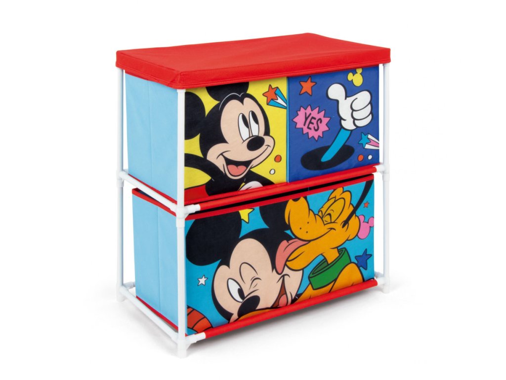 Organizér na hračky MICKEY a Pluto se 3 boxy červeno-modrý