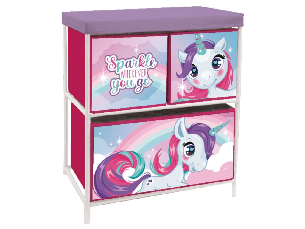 Organizér na hračky UNICORN - JEDNOROŽEC 3 boxy růžový 53x30x60 cm
