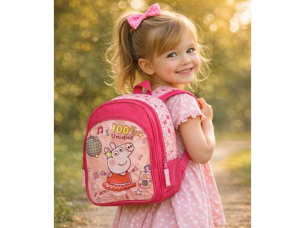 Růžový dětský batoh Peppa Pig pro holky je ideální volbou do školky, na výlety i volnočasové aktivity. Tento lehký a pohodlný batůžek Peppa Pig má dvě praktické komory se zipovým zapínáním, které poskytují dostatek prostoru na svačinu, pití i oblíbené hračky.