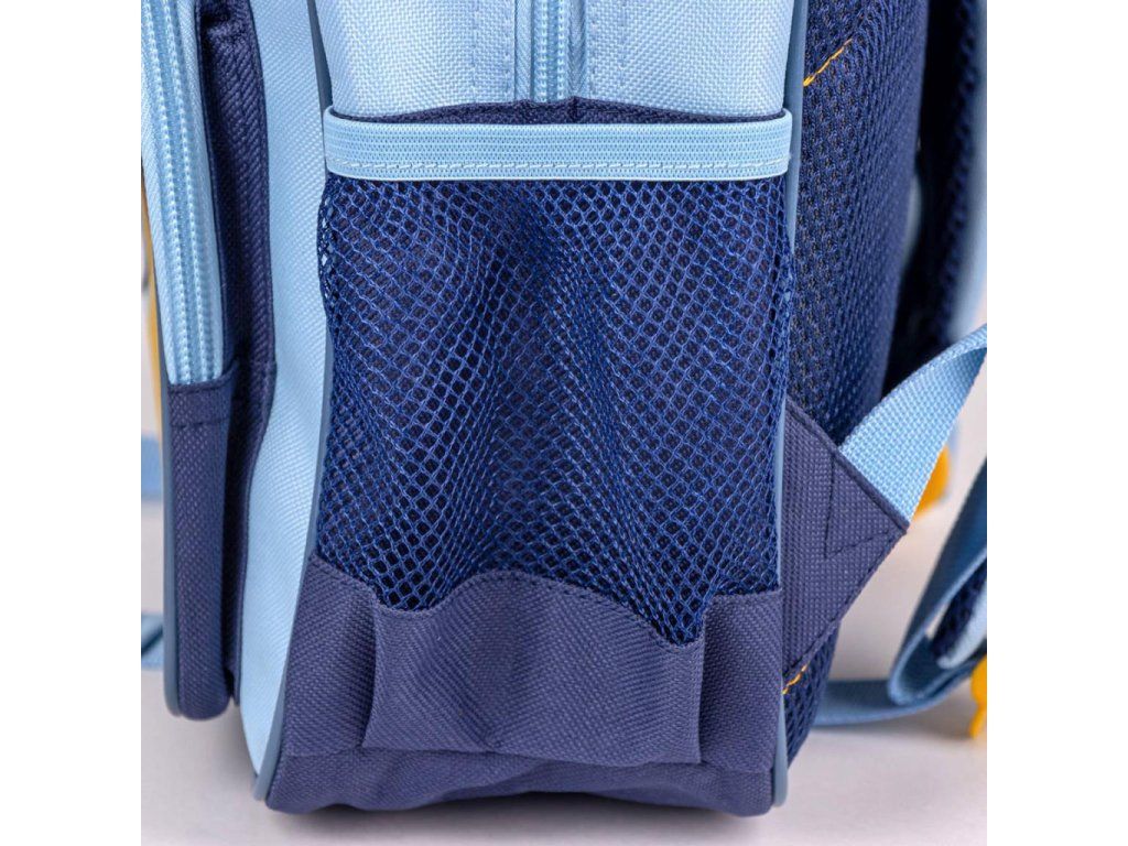 Batoh je vybaven dvěma přihrádkami na zip, které poskytují dostatek prostoru pro svačinu, hračky nebo školní potřeby. Boční síťovaná kapsa je vhodná například na láhev s pitím. Díky rozměrům 30 × 16 × 10 cm je lehký a snadno přenosný.