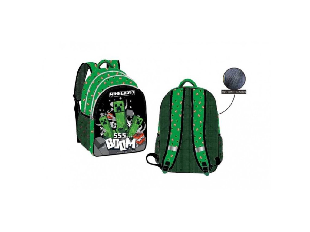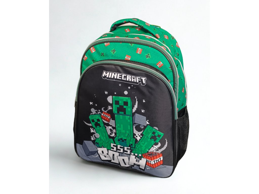 Školní batoh s oblíbeným hrdinou Creeperem z videohry Minecraft. Na přední straně se nachází obrázek Creepera, látka a popruhy jsou zdobené celopotiskem. Batoh má tři hlavní komory na zip, kam se vejdou všechny potřebné věci. Na bocích jsou umístěné sítované kapsy pro uložení láhve s pitím. Na popruzích se nachází reflexní prvky pro větší bezpečnost. Celá záda jsou polstrovaná, stejně tak i délkově stavitelné popruhy. Batoh má v horní části i pohodlné poutko pro ruční přenášení, také s velmi kvalitním polstrováním.