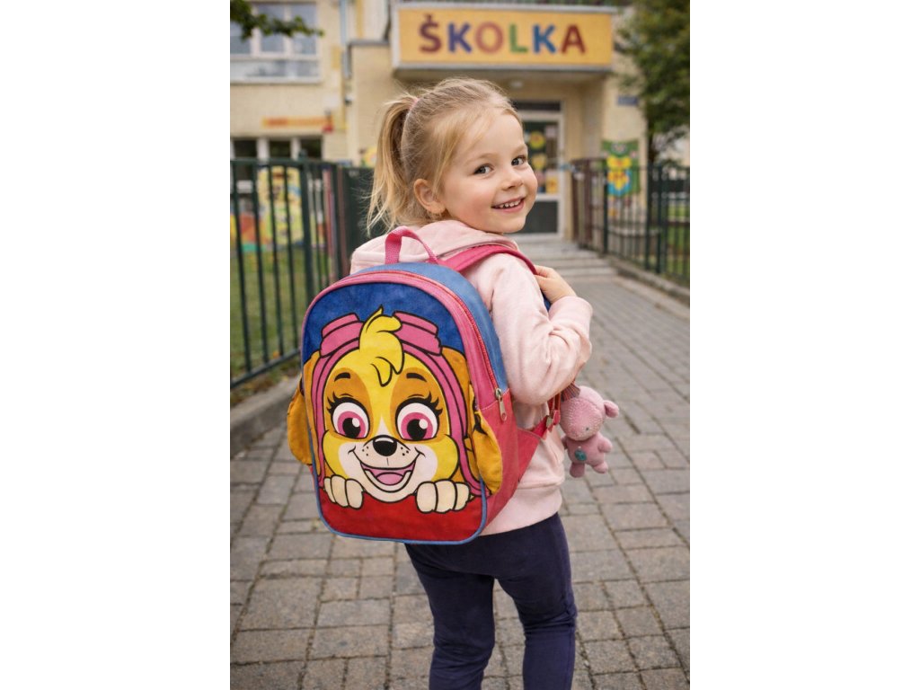 Batoh pro holky se Skye. Do školky i na výlety jedině se svými pohádkovými hrdiny. Přední strana batůžku je nádherná, plyšová a dokonale sympatické jsou i 3D plyšová ouška po stranách. Batoh Paw Patrol pro holčičky má jednu velkou centrální kapsu se zapínáním na zip. Popruhy na zádech mají měkkou výstelku a jsou nastavitelné. Nechybí ani ucho na zavěšení či přenášení v ruce.