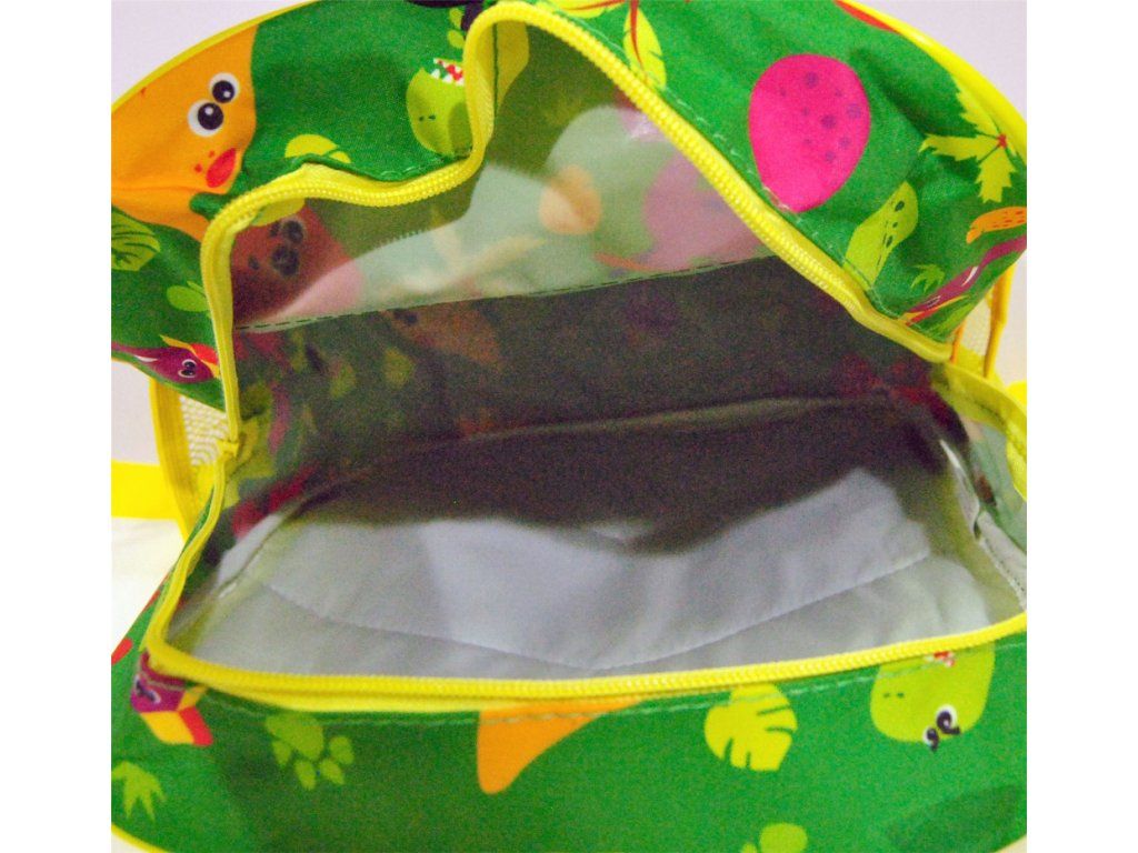 Dětský batoh s dinosaurem. Veselý batoh v zeleném provedení s usměvavým obličejem. Praktický batoh, který se dětem líbí.