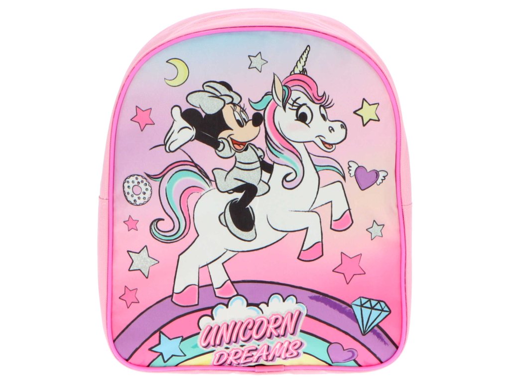 Dívčí batoh MINNIE UNICORN s duhou růžový 30 cm