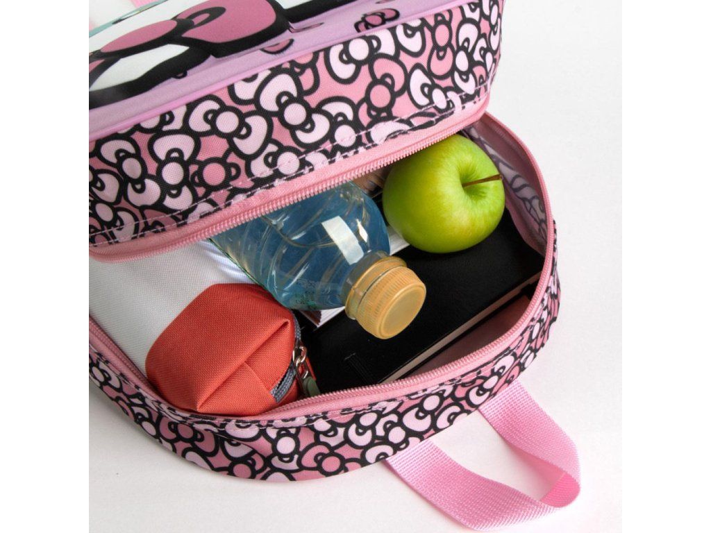 3D dětský batoh HELLO KITTY mašličky 1 kapsa růžový 31 cm