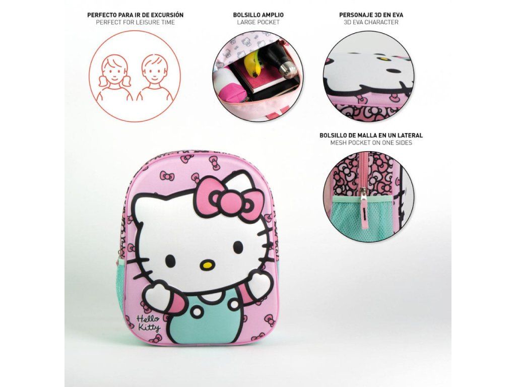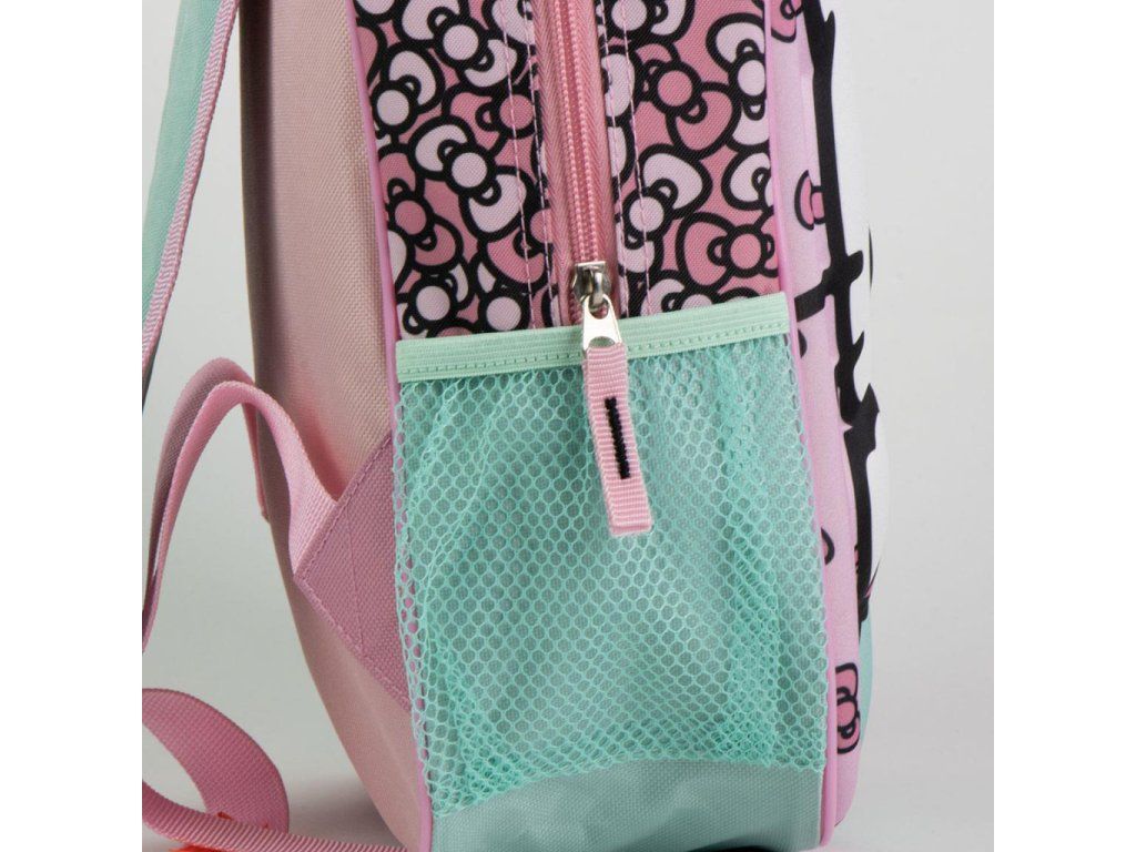 Dětský 3D batoh Hello Kitty v růžovo-mentolovém provedení přináší hravý design, který potěší všechny malé milovnice ikonické postavičky. Přední panel s plastickým motivem Hello Kitty a jemným vzorem mašliček dodává batohu jedinečný vzhled, který zaujme na první pohled.