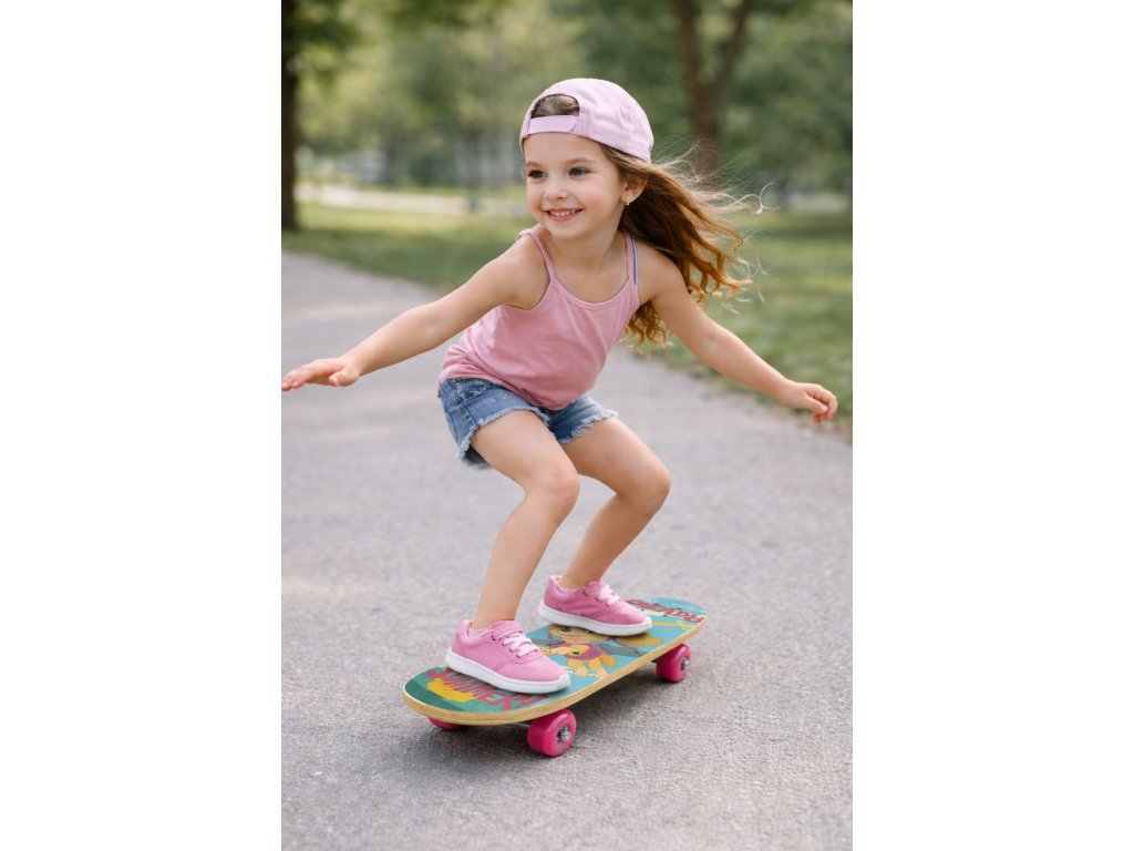 Parádní skateboard s Tlapkovou patrolou pro holky. Skye a Liberty se postarají o pořádné vzrůšo, až budou holky trénovat rovnováhu a dovednosti. Dřevěný javorový skateboard je vhodný na betonové povrchy - chodníky, uličky i nádvoří, všude tam, kde je vyloučen provoz.