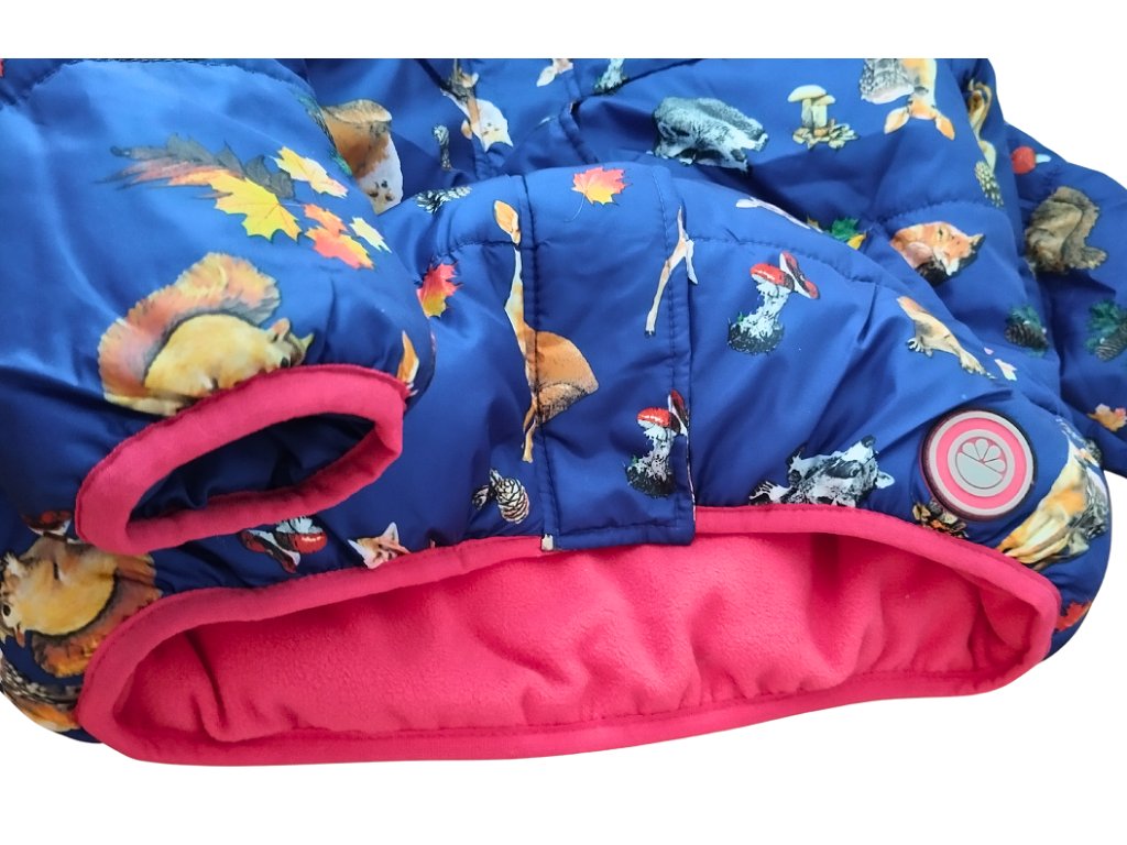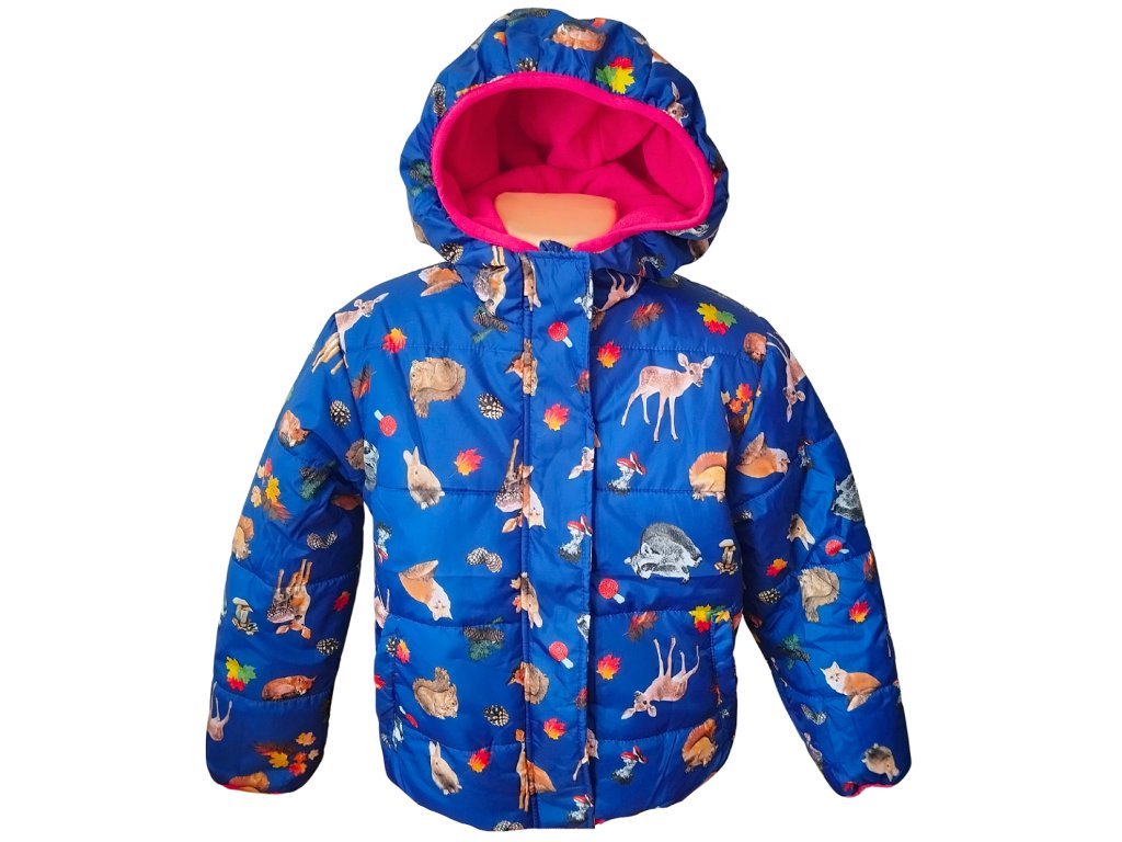Zimní bunda pro milovnice zvířátek. Jako zvířátka hřeje jejich kožíšek, tak tahle zimní bunda zahřeje vaše holčičky. Bunda je vyteplená, tělo je podšito hebkým hřejivým polar fleecem, zapínání je na zip, doplněný klopou se zapínáním na druky. Na přední straně je i reflexní prvek. U krku je bunda do stojáčku, který brání zafouknutí a drží teplo. Samozřejmostí je hřejivá kapuca a dvě kapsy na předním dílu.