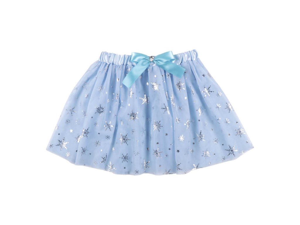 Tento kouzelný dětský set s motivem pohádky Frozen je ideální pro malé fanoušky zimního království. Součástí balení je lehká průsvitná sukýnka s třpytivými sněhovými vločkami a čelenka připomínající ledovou korunku inspirovanou princeznou Elsou.