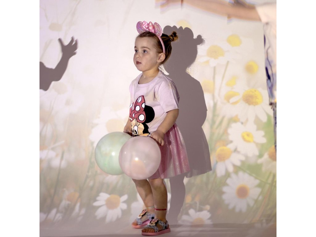 Součástí balení je lehká průsvitná třpytivá sukně a čelenka s typickými Minnie oušky a mašlí, které vytvářejí hravý a veselý vzhled.