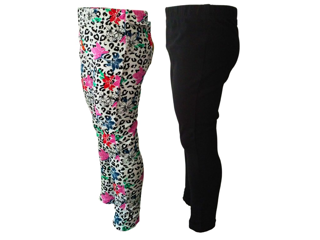 Velmi kvalitní a cenově výhodné legíny v balení po 2 kusech. Legíny jsou extra příjemné pro svou dokonalou pružnost, nikde neškrtí, pas je také extra pružný. V praktickém balení najdete jeden kus s celolátkovými motivy a druhý kus jednobarevný, černý, takže je lze využít při různých příležitostech a v kombinaci s vícero tričky či tunikami.