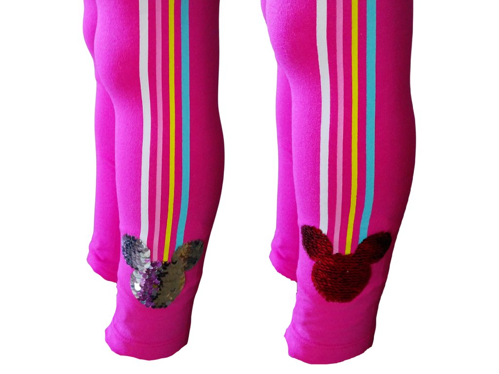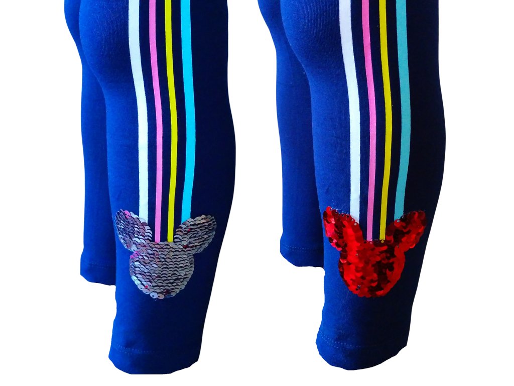 Dívčí legíny s myškou Minnie jsou velmi příjemné, vyrobené z pružné bavlny s příměsí elastanu. Motiv Minnie má měnící se flitry a tak podle nálady mohou být třpytivě červené nebo stříbrné. Legíny jsou ideální do školy, do školky i na doma.