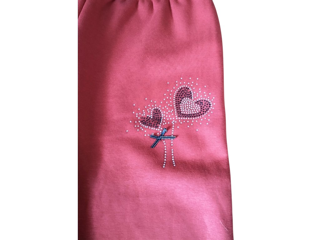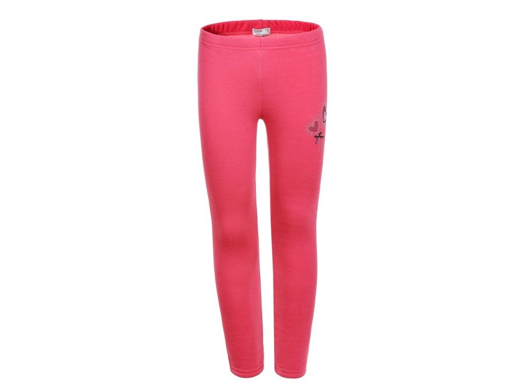 Krásně hřejivé dívčí zateplené legíny, vhodné do chladného počasí. Legíny mají uvnitř příjemnou chlupatinku, v pase pružnou gumu a na jedné z nohavic krásný motiv. Motiv je ve tvaru srdíček, které jsou tvořeny drobnými kamínky.