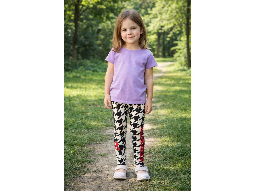 Krásné dívčí legíny s myšou Minnie, které jsou zdobeny kovovými cvočky a mašličkami na obou nohavičkách. Legíny vynikají pružností a dokonale se přizpůsobí postavě.