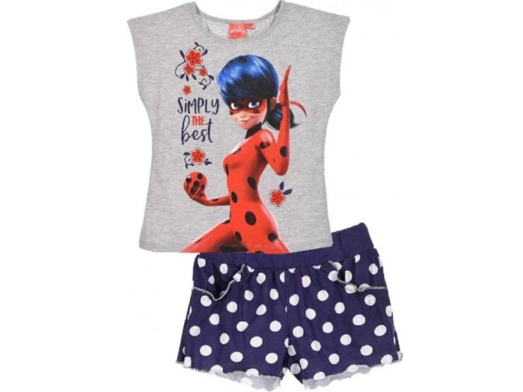Krásný letní set pro holčičky, které fandí Kouzelné Berušce. Šedé tričko je doplněno šortkami s velkými puntíky. které celému kompletu dodávají šmrnc. Šotky mají boční kapsy a pohodlnou vyšší gumu v pase.