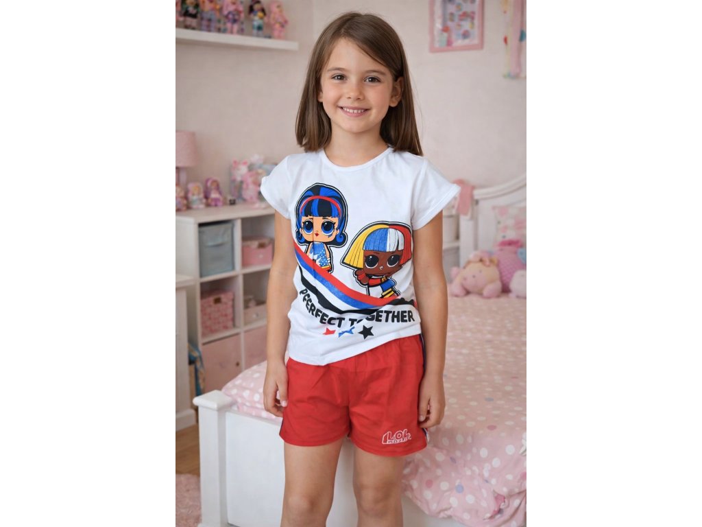 Dívčí letní set L.O.L. perfect together se šortkami bílo-červený