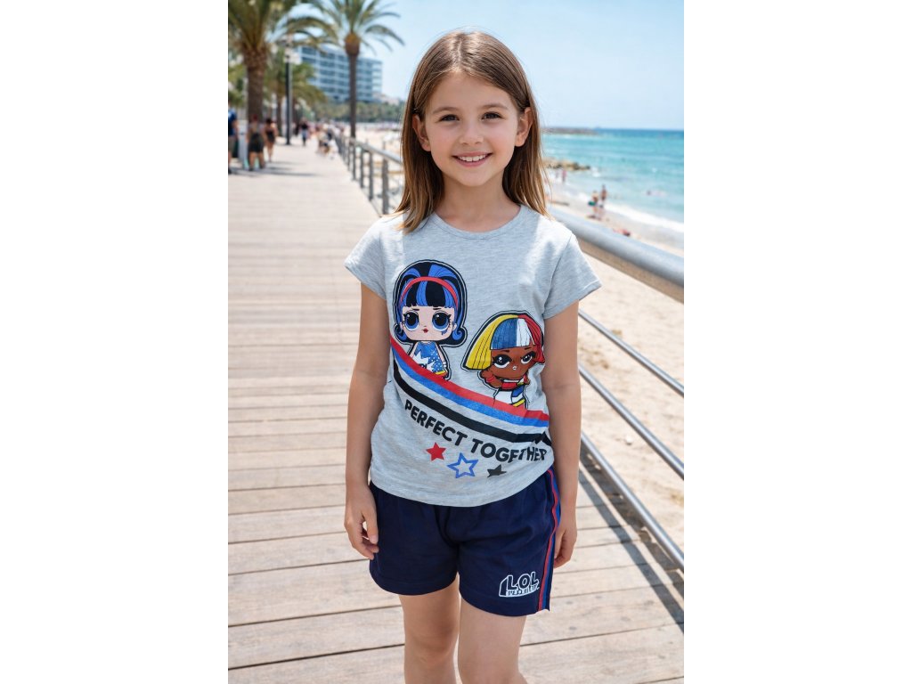 Dívčí letní set L.O.L. perfect together se šortkami šedo-modrý